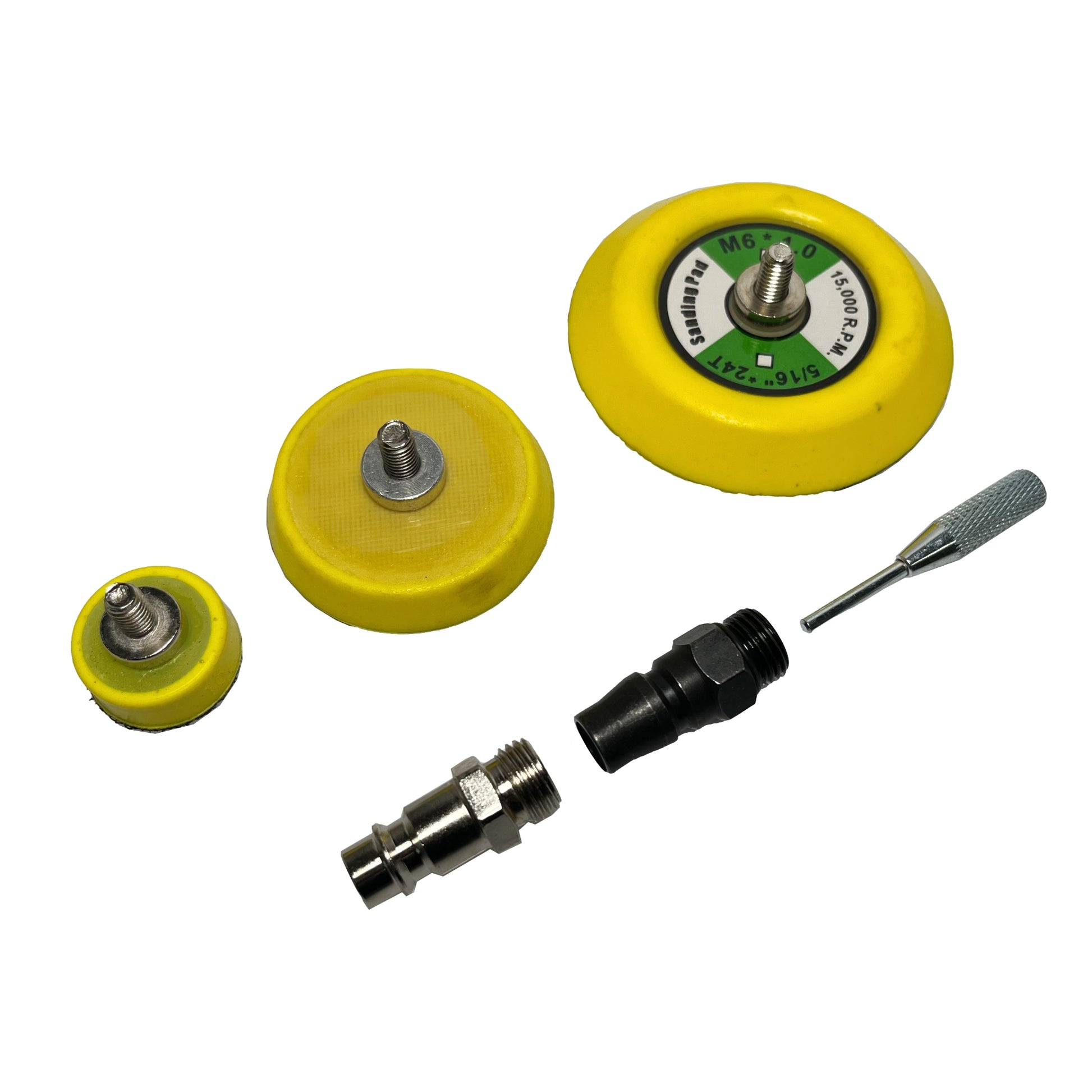 De machine wordt geleverd inclusief 3 verschillende maten opnameschijven: 1 inch, 2 inch, 3 inch. Deze platen kunnen eenvoudig en snel gewisseld worden. Iedere plaat is voorzien van M6 schroefdraad en kan vervangen worden door andere opnameschijven met dezelfde schroefdraad.